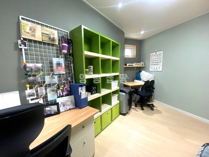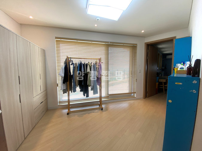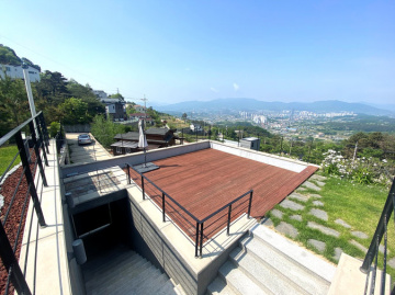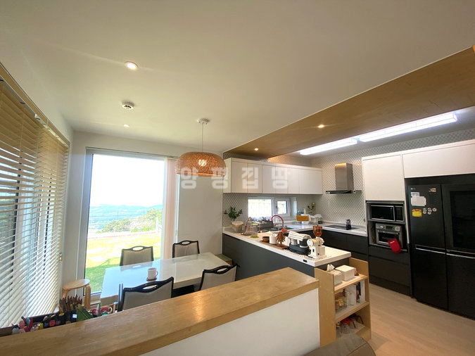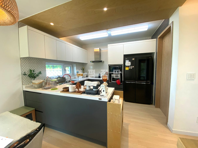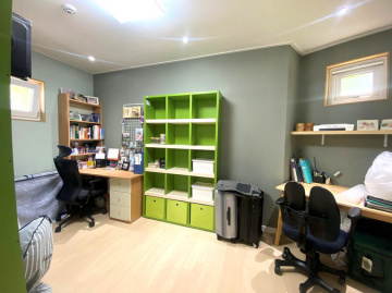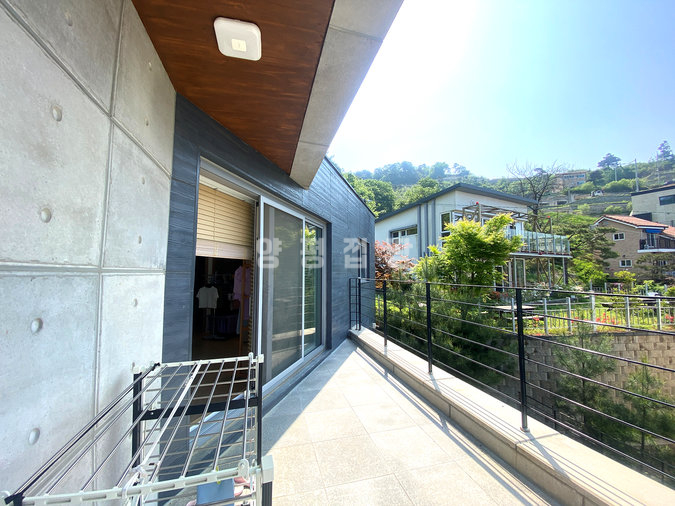 주택은 철근콘크리트 구조로 시공되어 내구성과 단열성이 뛰어나며, 소유주 직영으로 지어진 만큼 자재와 공정에 신경을 쓴 주택입니다. 1층에는 거실과 주방, 다용도실, 부부침실과 욕실이 있으며, 2층에는 아담한 거실과 침실 3개, 욕실, 넓은 테라스가 있어 가족 단위 생활에 적합합니다. 특히 공용공간은 거실과 주방이 하나로 연결되어 개방감이 뛰어납니다.
