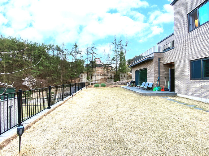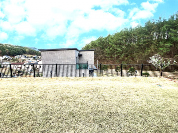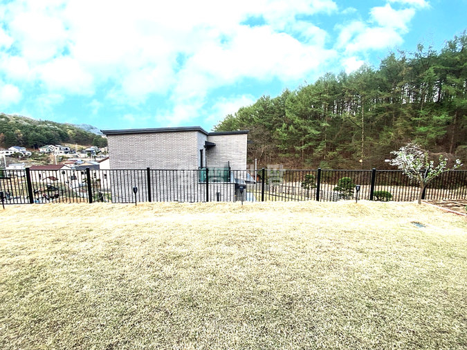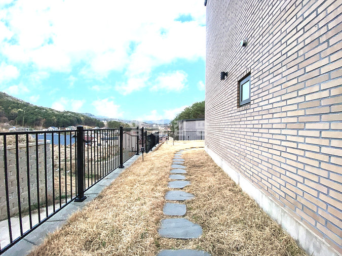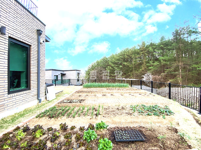 마당은 잔디와 텃밭이 어우러져 있고, 경계는 펜스로 정리되어 깔끔한 인상을 줍니다. 야외수도와 기본 조경이 갖춰져 있어 관리가 편리하며, 붙박이장과 시스템 냉난방기 같은 생활 편의 시설이 마련되어 있어 입주 후 바로 편리하게 사용할 수 있는 주택입니다. 독립적인 입지에 위치해 사생활이 잘 보호되는 점도 큰 장점입니다.