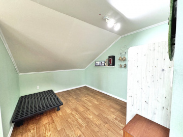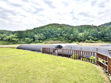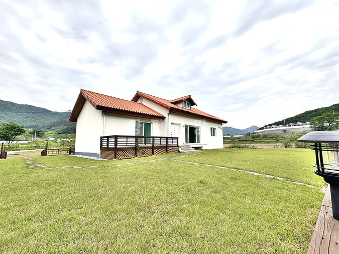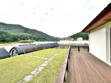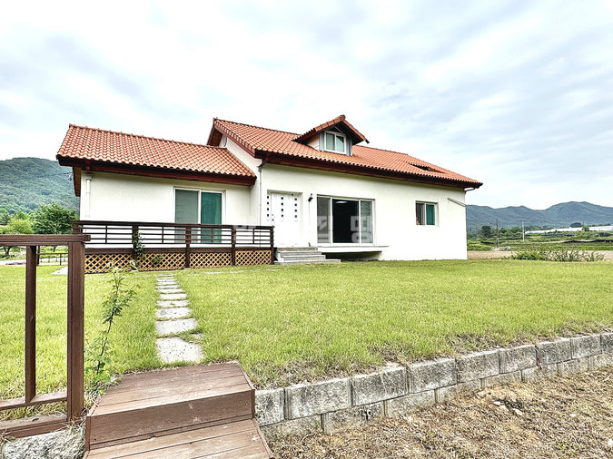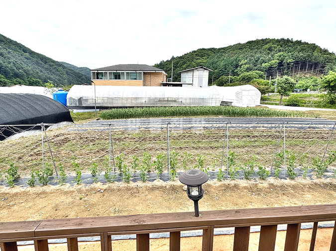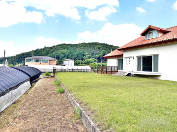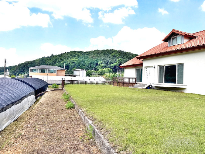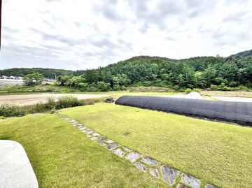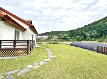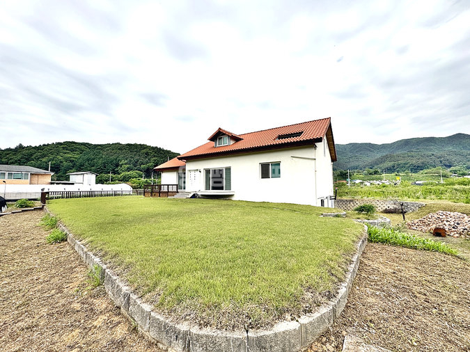 잔디마당과 디딤돌, 목재 데크가 조화를 이루며 경계는 목재 펜스로 정리되어 아늑한 분위기를 완성했습니다. 특히 텃밭 공간이 넉넉해 자급자족형 전원생활을 실현하기에 충분합니다. 자연의 운치와 넓은 토지를 동시에 갖춘 매력적인 전원주택입니다.