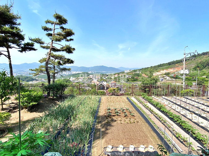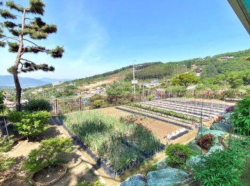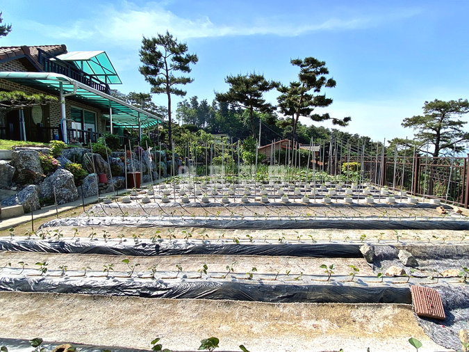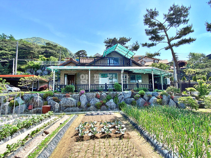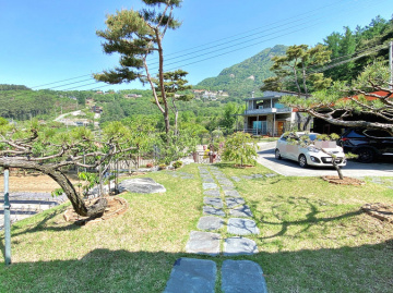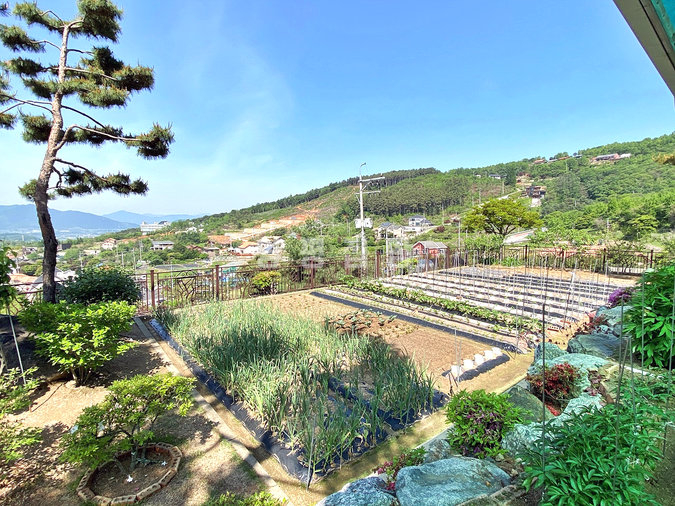 정원은 2단 구조로 꾸며져 있으며 넓은 잔디마당과 데크, 소나무 및 다양한 조경수, 그리고 단차가 있는 텃밭 공간이 있어 여유로운 전원생활을 누리실 수 있습니다. 지열보일러를 이용해 난방비 절감 효과가 크며, 수도는 공동 지하수(6가구 사용)와 정화조를 사용합니다.