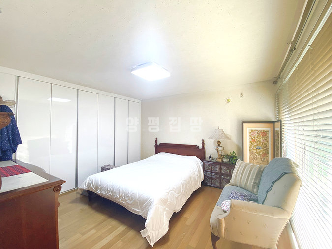 마당은 잔디와 데크, 조경수로 구성되어 정갈하고, 주차공간과 텃밭까지 갖추어 생활 편의성이 높습니다. 국수역과 생활 인프라가 가까운 입지와 더불어 철근콘크리트 주택의 안정성과 지열 난방의 장점을 모두 누릴 수 있는 주택입니다.