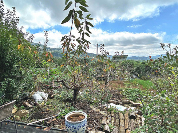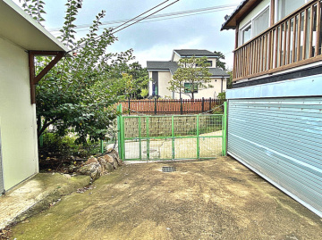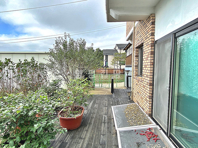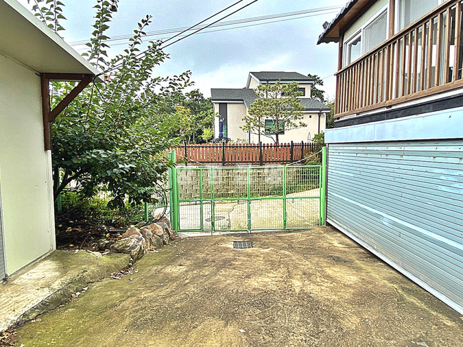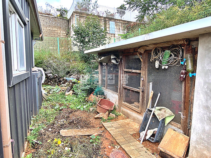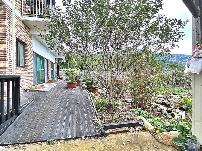 정원은 넓은 터밭과 조경수, 자연석이 어우러져 있으며, 외부에는 정자와 데크, 철제 울타리가 설치되어 있습니다.
