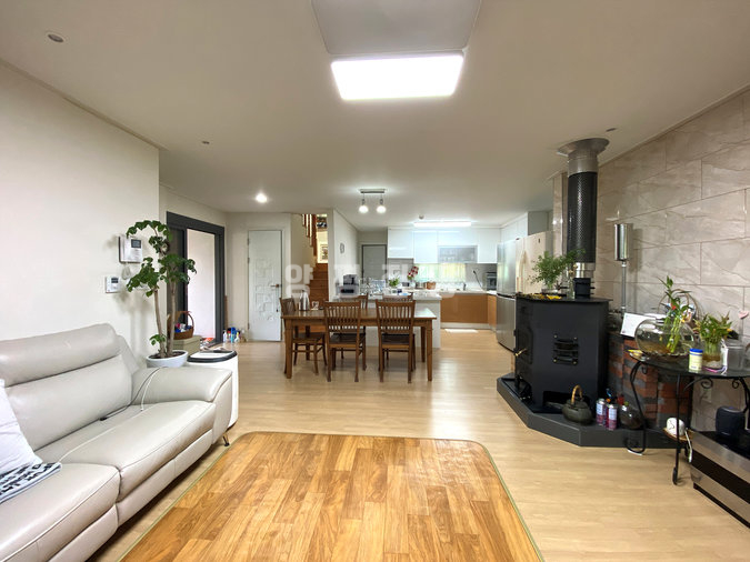 주택은 철근콘크리트 구조로 지어져 내구성이 뛰어나며, 장기적인 안정성과 견고함을 자랑합니다. 내부는 공간 활용이 잘 되어 있으며 거실, 주방, 붙박이장과 벽난로 등이 설치되어 실생활의 편리함을 더해줍니다.
