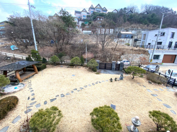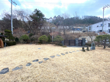 외관은 직선미가 강조된 모던한 형태로, 깔끔하면서도 단정한 인상을 주는 주택입니다. 넓은 잔디마당과 운치 있는 정자가 어우러져 있으며 소나무와 정원수가 더해져 사계절 변화가 아름답게 담기는 생활 공간을 제공합니다.