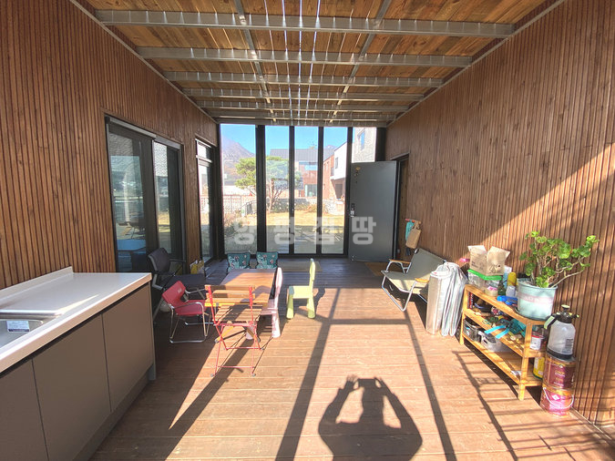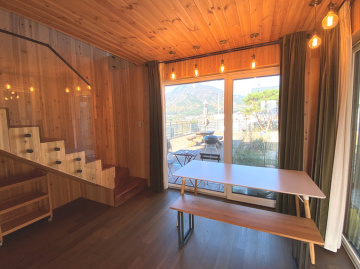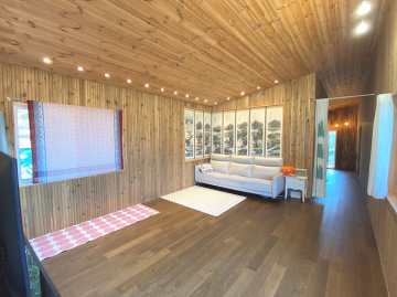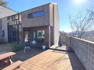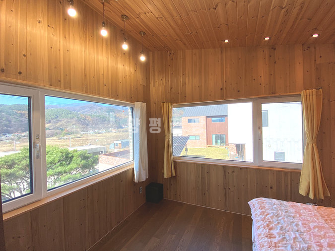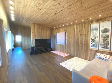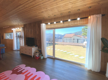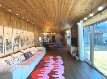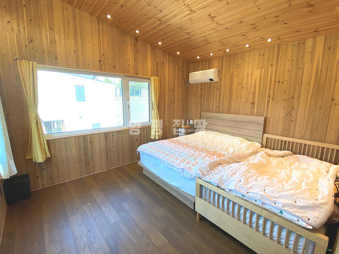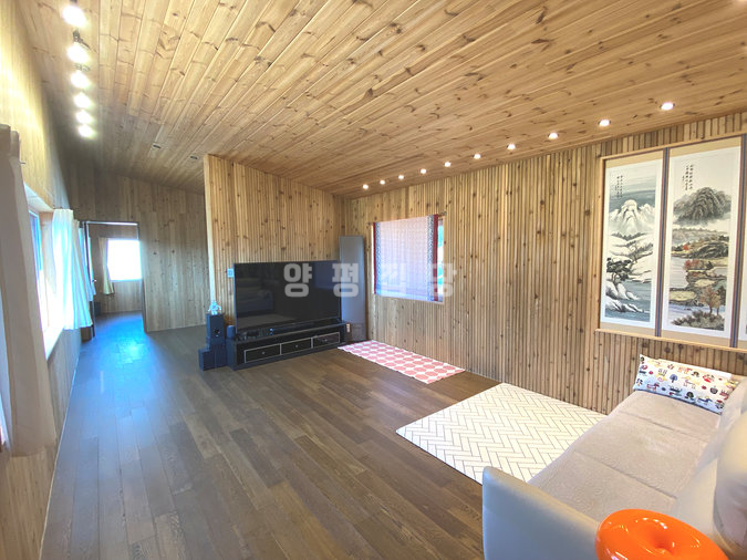 주택은 목조 구조로 지어져 따뜻한 느낌과 함께 쾌적성을 더하고 있으며, 원목 마루와 루바 마감으로 자연스러운 분위기를 연출합니다. 1층은 거실과 주방, 침실, 욕실로 구성되어 있고 2층은 침실 2개와 거실, 욕실이 있어 생활 동선이 효율적입니다. 별채와 썬룸이 마련되어 있어 게스트 공간이나 수익형 공간으로도 활용이 가능합니다.