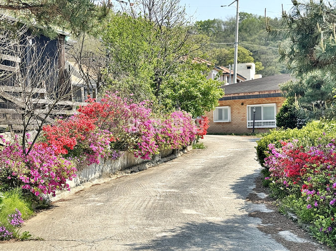 500평 가까운 넓은 대지에는 평잔디와 텃밭이 조성되어 있으며 다양한 조경수와 화단이 어우러져 사계절 정원의 변화를 즐길 수 있습니다. 마을 속에 위치해 이웃과 교류하며 전원생활을 시작하기에도 알맞은 곳으로, 실거주와 여가 모두에 만족도를 높여줄 전원주택입니다.