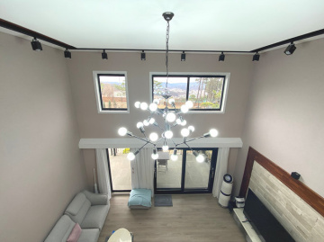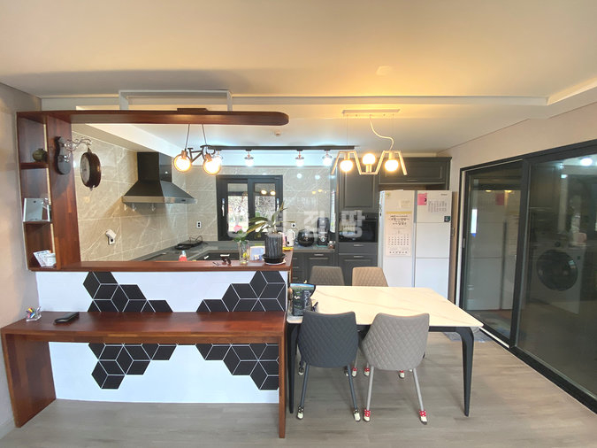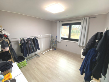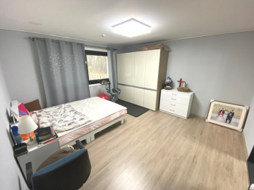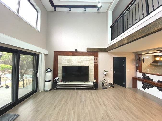 주택은 친환경 자재로 지어진 목조 구조로 안정성과 쾌적함을 동시에 갖추었으며, 지열보일러를 사용해 에너지 효율성과 경제성을 높였습니다. 내부는 1층에 거실, 주방, 다용도실, 침실 2개와 욕실 2개가 있으며, 2층에는 거실, 침실 2개, 욕실, 테라스 공간이 마련되어 있어 가족 단위 거주에 적합합니다. 넓은 개방형 구조와 높은 층고는 공간감을 더욱 돋보이게 합니다.