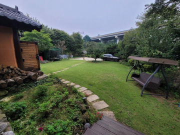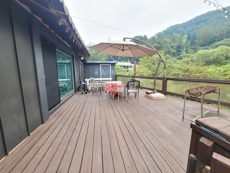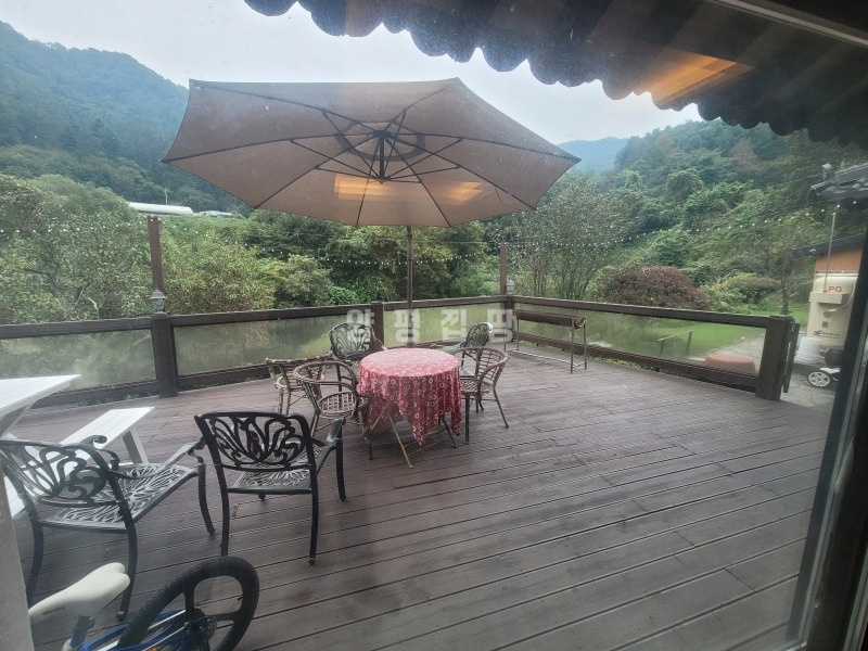 넓은 잔디정원과 자갈마당은 조경수와 꽃나무로 단아하게 꾸며져 있으며, 주택 뒤로는 계곡이 흐르고 국유지를 일부 활용할 수 있어 자연과 맞닿은 생활이 가능합니다. 여름철 시원한 물놀이와 사계절 내내 계절감을 느낄 수 있는 입지는 본 주택의 큰 장점입니다.