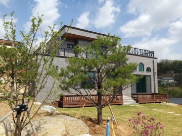 본 전원주택은 양평 옥천면 옥천리에 위치해 남동향으로 배치되어 있어 집안으로 햇살이 잘 들어옵니다. 잔디 마당과 텃밭, 디딤석과 조경수로 꾸며진 외부 공간은 전원생활의 여유를 즐기기에 충분합니다. 또한 지하차고와 옥외 주차 공간이 함께 마련되어 있어 차량 관리에도 편리함을 제공합니다.