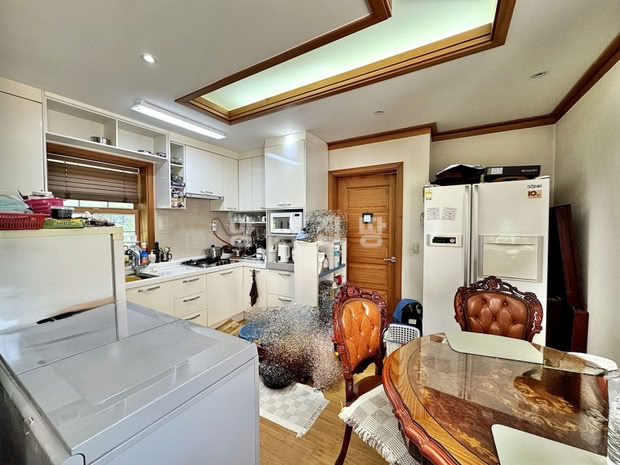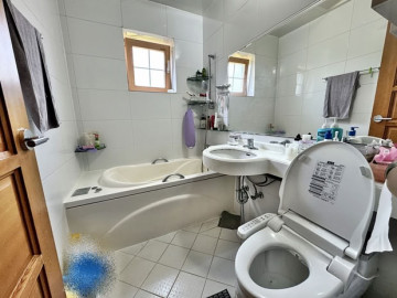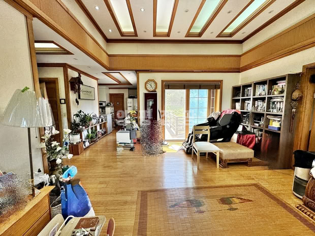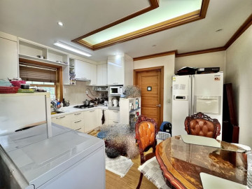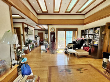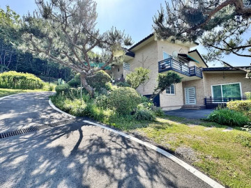 주택은 철근콘크리트 구조로 지어져 내구성이 뛰어나며, 심야전기 난방을 적용해 효율적인 에너지 사용이 가능합니다. 내부는 1층과 2층이 각각 독립적으로 사용 가능한 구조로, 총 네 개의 방과 네 개의 욕실, 두 개의 거실과 주방이 배치되어 있습니다. 지하 차고와 보일러실 겸 창고가 있어 주차 및 수납에도 편리함을 제공합니다.