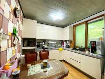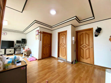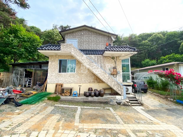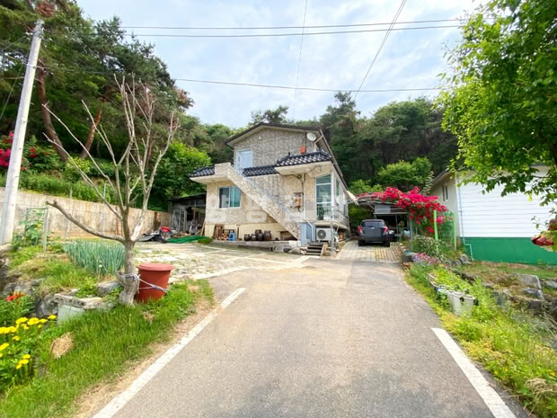 주택은 2001년에 준공되었으며, 경량철골과 조적조로 시공되었습니다. 도시가스 난방과 개별지하수, 오수관로, 태양광 전기 설비가 갖춰져 있습니다. 내부는 1층에 세 개의 방과 거실, 주방, 욕실 두 개가 있고, 2층은 방 두 개와 거실, 주방, 욕실로 구성되어 있어 총 다섯 개의 방을 제공합니다. 현재 1층은 소유자가 거주하고 있으며, 2층은 임차인이 전세로 사용 중입니다.