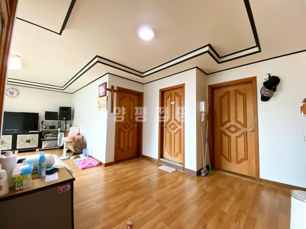 본 전원주택은 양평군 옥천면 옥천리에 위치해 남서향 조망이 펼쳐지는 매물입니다. 단독필지와 인근 향교 부지를 밭으로 무상 사용하고 있어 실제 체감 면적이 넓은 점이 특징입니다. 주택 앞 마당에는 평상과 비가림막, 야외 수전과 이동식 창고가 마련되어 있어 생활 편의성을 높였습니다.
