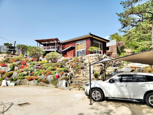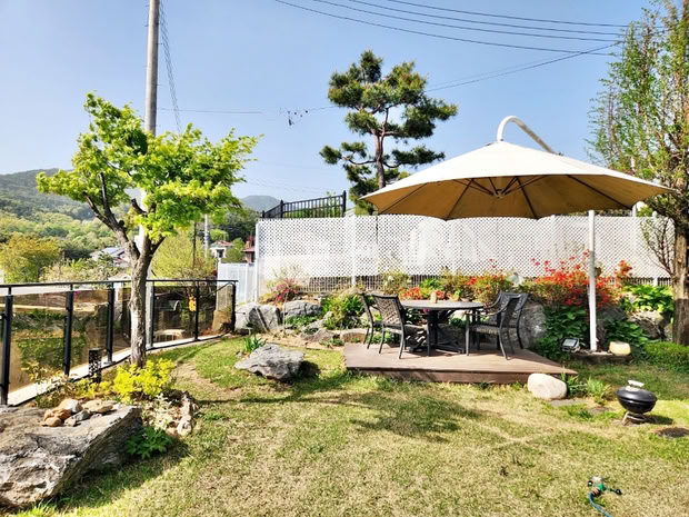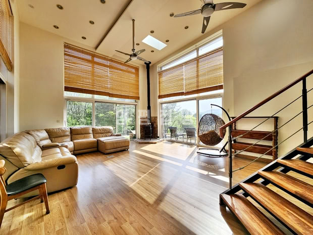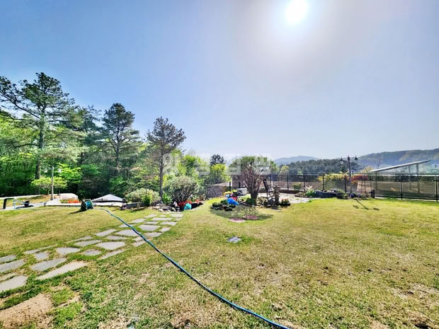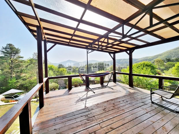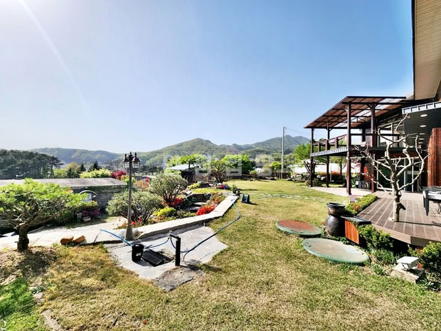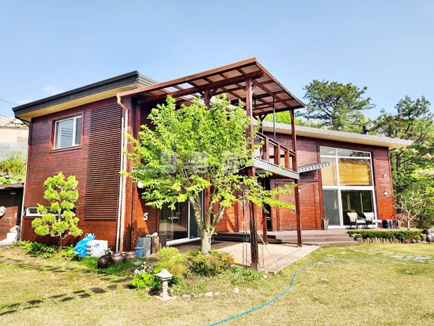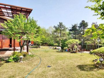본 전원주택은 서향 배치로 정원을 내려다보는 조망이 탁월하며, 철근콘크리트 구조로 지어진 튼튼한 주택입니다. 외부에는 데크와 파고라, 평잔디와 조경수들이 어우러져 여유로운 전원생활을 누리기에 적합합니다. 철제와 강화유리로 마감된 휀스가 설치되어 있어 외부와의 경계를 안정감 있게 지켜줍니다.