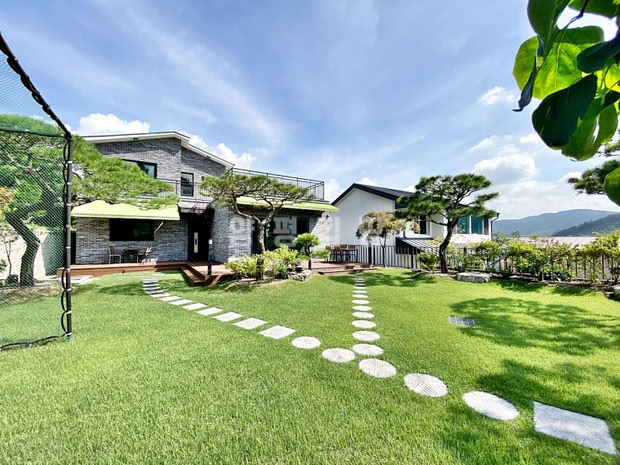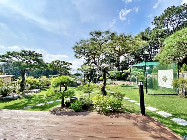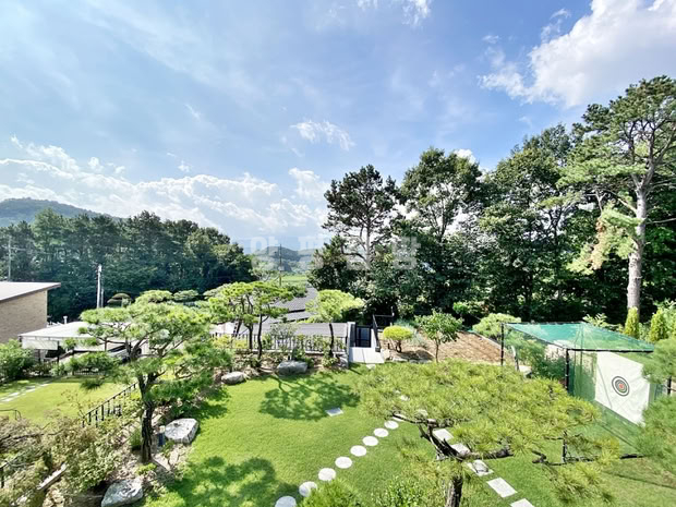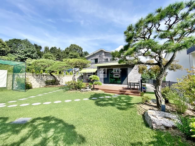 본 전원주택은 양서면 청계리에 위치하며, 남향으로 배치되어 정원 조망이 탁 트여 있는 매물입니다. 철근콘크리트 구조로 지어진 주택은 내구성과 안정성을 갖추고 있으며, 잔디마당과 소나무 조경수, 철제 휀스와 대문이 어우러져 고급스러운 외관을 보여줍니다.