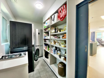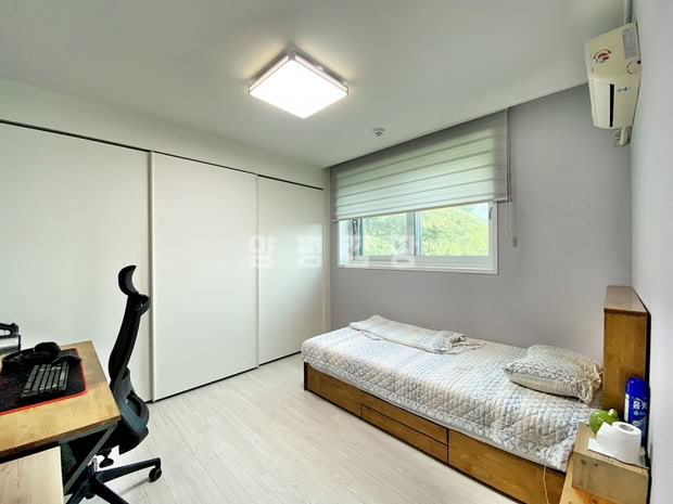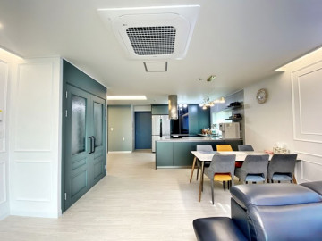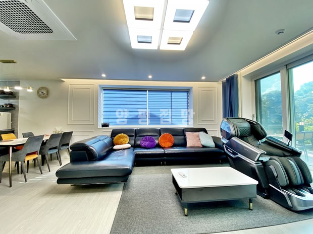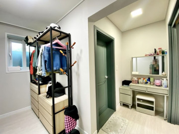 내부는 방 3개와 욕실 3개로 구성되어 있으며, 붙박이장과 시스템에어컨이 설치되어 있어 생활의 편리함을 더합니다. 1층은 거실과 주방, 다용도실이 연결되어 활용도가 높으며, 2층에는 외부 테라스와 어닝이 설치되어 여유로운 생활 공간을 제공합니다.