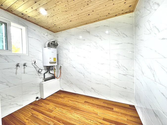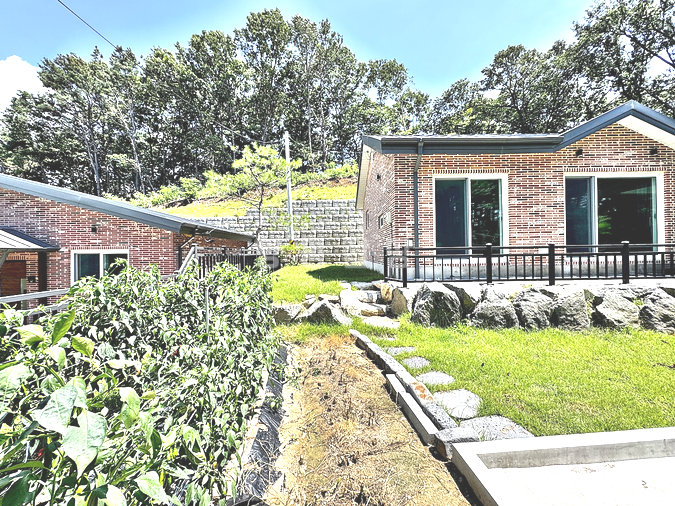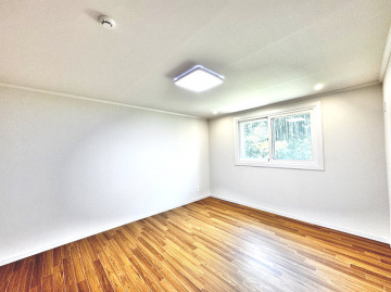 주택은 2025년 5월 준공된 경량철골조 단층 구조로, 방 2개와 욕실 2개, 거실, 주방, 다용도실로 구성되어 있습니다. 내부는 단열 설계를 꼼꼼히 하여 냉난방 효율이 높으며, 안쪽에는 붙박이장이 설치되어 실용성이 돋보입니다. 외부는 데크와 잔디마당, 조경수가 어우러져 쾌적한 전원생활을 가능하게 하고, 주차박스와 함께 2대까지 주차가 가능합니다.