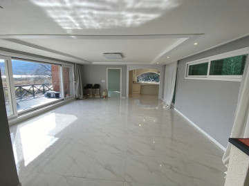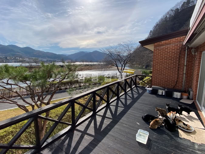 청운면 여물리에 자리한 본 전원주택은 뒤로는 국유림을 등지고 앞으로는 넓은 개천이 흐르는 배산임수의 입지를 자랑합니다. 하천 물길이 굽어지는 마지막 필지에 위치하여 사생활 보호가 우수하며, 가리는 것 없이 탁 트인 영구적인 강 조망을 선사합니다.