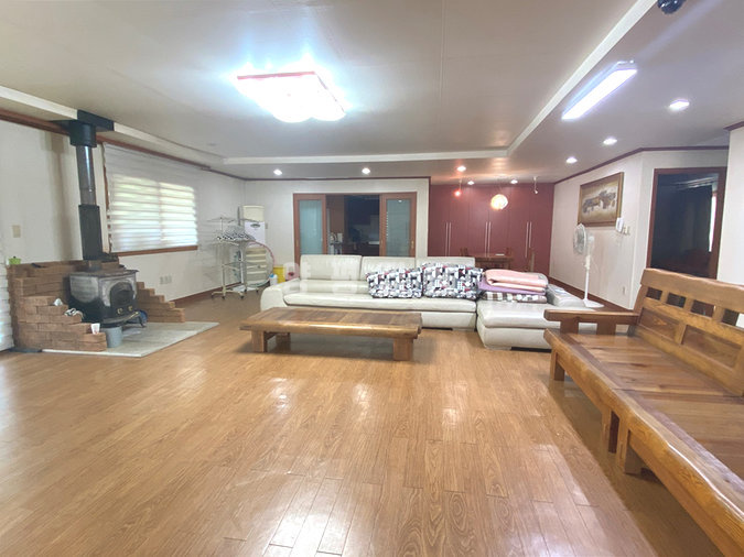 주택은 철근콘크리트 구조로 지어져 내구성이 뛰어나며, 심야전기 보일러와 벽난로를 함께 사용해 안정적인 난방이 가능합니다. 내부는 넓은 거실과 주방, 다용도실, 침실 3개, 욕실 2개로 구성되어 있으며, 거실에는 붙박이장이 설치되어 수납이 용이합니다. 일부 공간은 드레스룸이나 영화방 등으로 활용할 수 있어 생활 편의성이 높습니다.