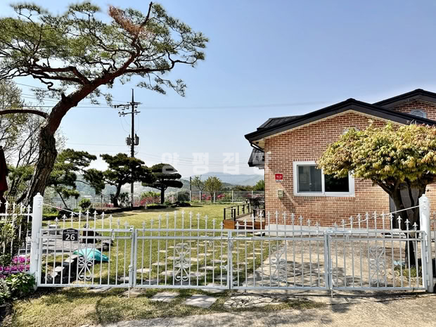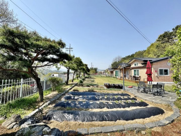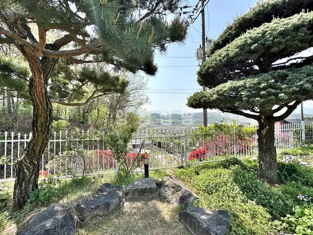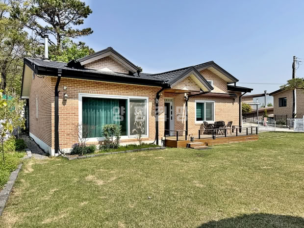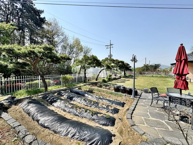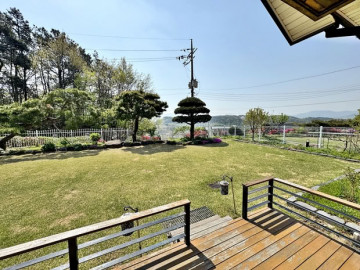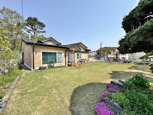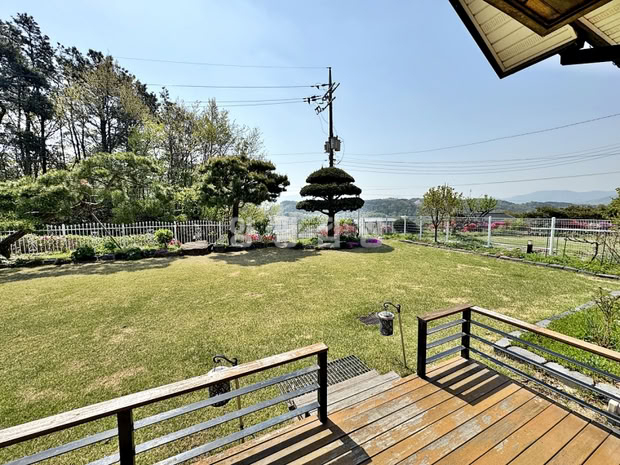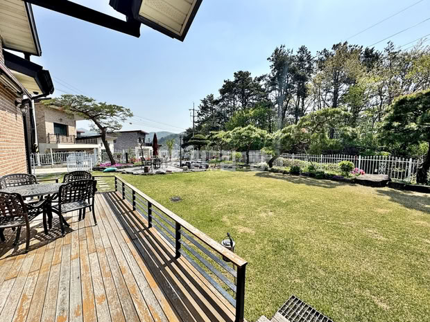 본 전원주택은 남동향으로 배치되어 채광이 풍부하고 앞이 트여 있는 시야 덕분에 쾌적한 생활이 가능합니다. 마당은 데크와 잔디, 디딤석이 어우러져 있으며 울타리와 텃밭이 조성되어 있어 여유로운 전원생활을 즐기기에 알맞습니다.