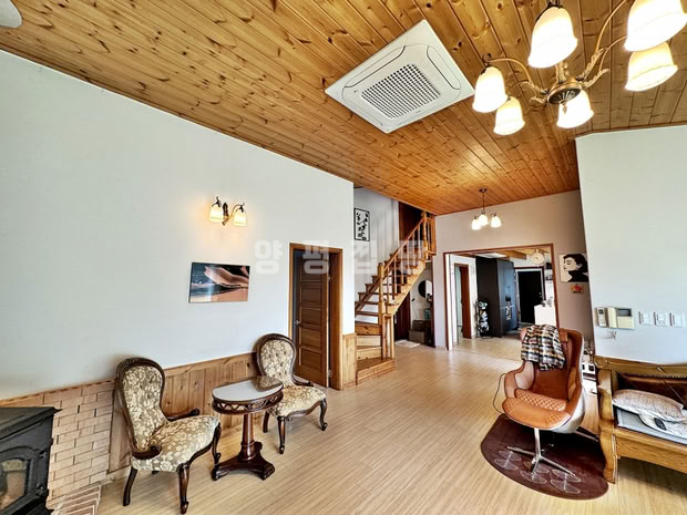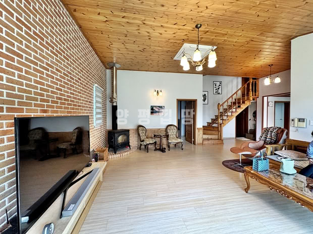 2010년에 준공된 조적조 주택으로 내구성이 뛰어나며, 거실에서는 목조 계단을 통해 다락방으로 연결되어 공간 활용도가 높습니다. 주방에는 별도의 다용도실과 세컨주방이 마련되어 있고, 기름보일러와 벽난로가 함께 설치되어 다양한 난방 방식을 활용할 수 있습니다.