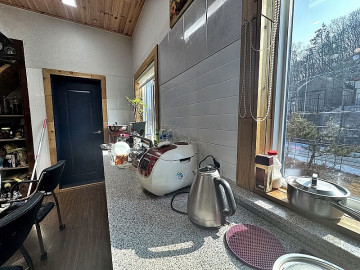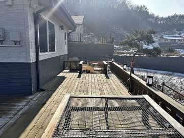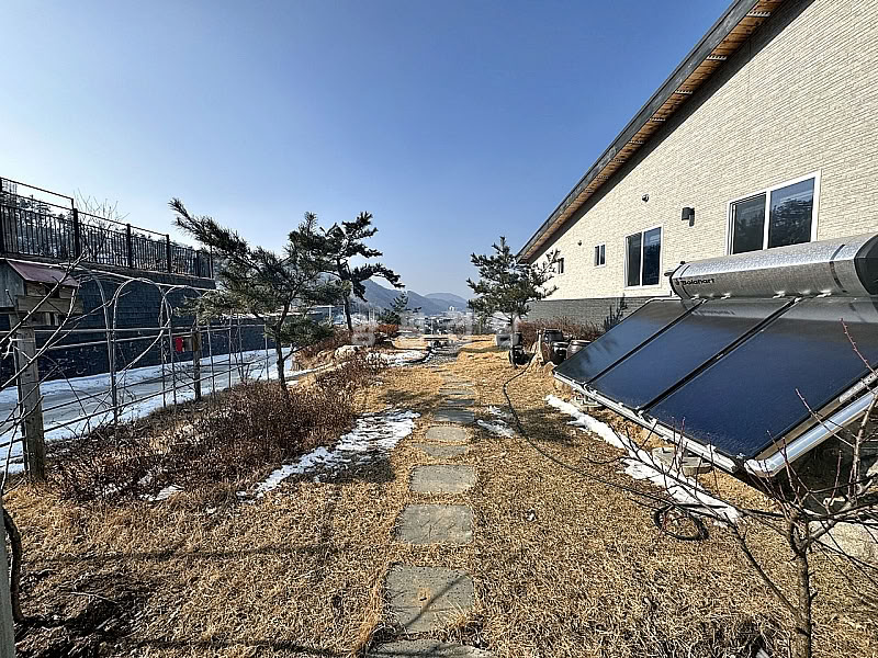 주택을 지을 때 기초 바닥 콘크리트를 1.25m로 매우 두껍게 시공하여 안정성을 높였으며, 태양광 패널 지붕을 갖춘 주차 공간과 잘 가꾸어진 잔디 마당, 데크, 텃밭은 전원생활의 만족도를 더해줍니다. 편리한 입지와 영구 조망, 실용적인 추가 공간까지 모두 갖춘 매력적인 주택입니다.