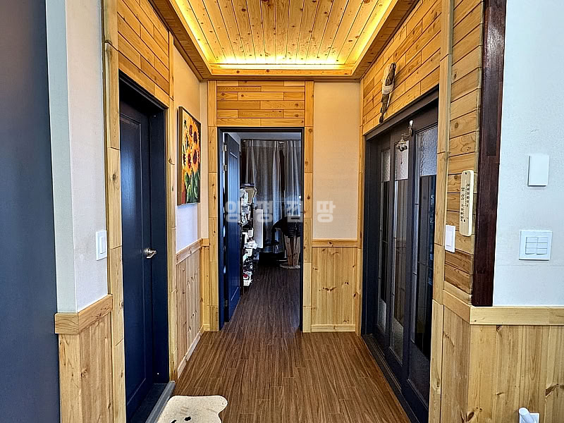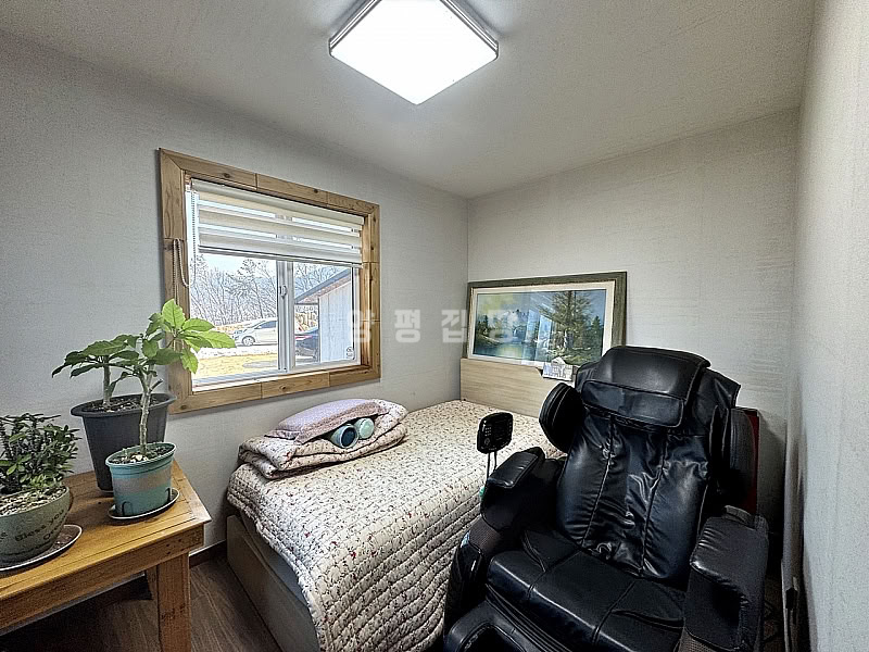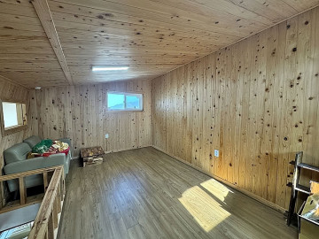 실내는 방 2개와 욕실 2개를 갖춘 실용적인 단층 구조로 설계되었으며, 연면적 외에 전기판넬이 설치된 5.5평의 넉넉한 다락방이 있어 아이들 놀이 공간이나 수납공간으로 활용하기에 매우 좋습니다.