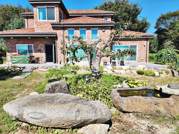본 주택은 540평의 토지 위에 자리한 2022년식 신축급 주택으로, 남향으로 시원하게 트인 조망이 일품입니다. 넓은 대지를 안정적으로 조성하기 위해 약 1억 원의 토목공사 비용을 투입하여, 견고하고 아름다운 정원의 기반을 마련했습니다.