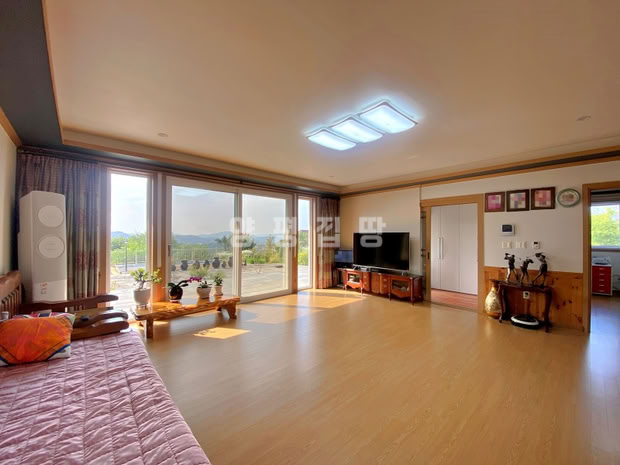 가장 큰 장점은 생활이 편리하고 선호도 높은 단층 구조라는 점입니다. 높은 천장고 덕분에 실내가 답답함 없이 넓게 느껴지며, 안방에는 드레스룸으로 활용 가능한 알파룸이, 현관에는 사계절 유용한 썬룸이 있어 실사용 공간을 넓혔습니다.