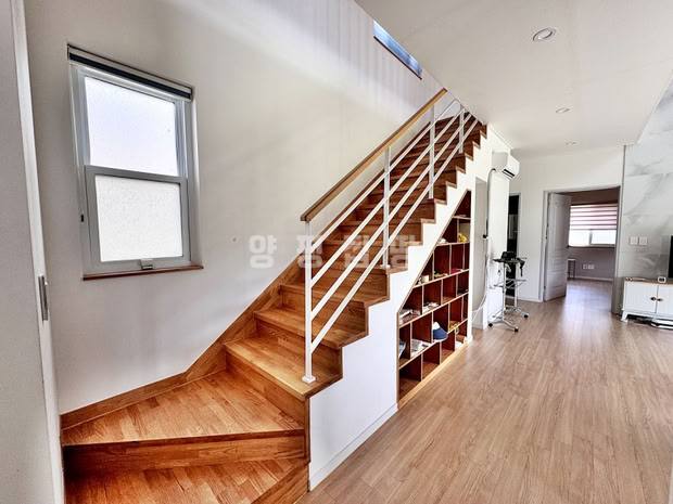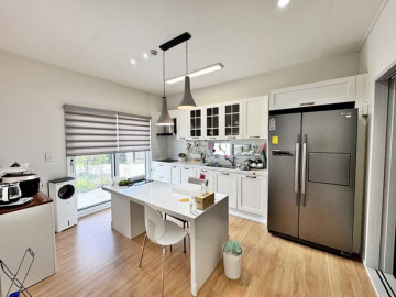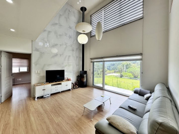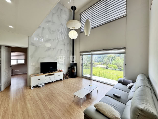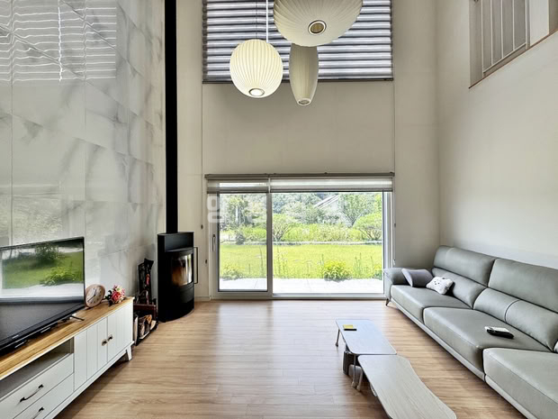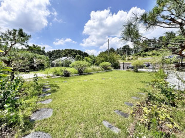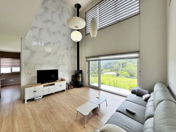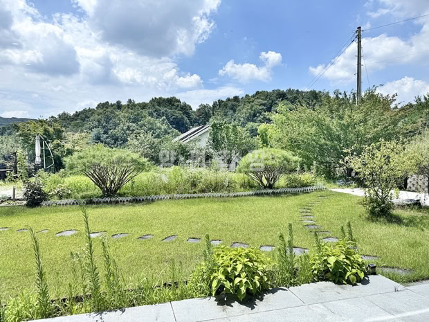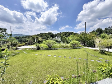 총 249평의 넉넉한 토지는 잘 가꾸어진 잔디 마당과 조경수, 텃밭 공간으로 구성되어 있습니다. 주택은 1층에 안방과 거실, 2층에 방 2개와 테라스가 있는 실용적인 2층 구조로 설계되었습니다. 거실에는 벽난로가 설치되어 있어 아늑하고 운치 있는 분위기를 더해줍니다.