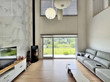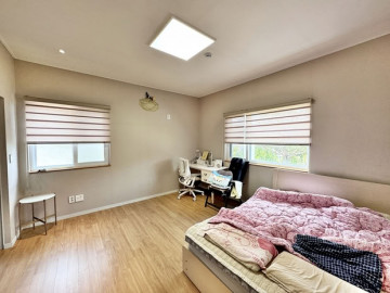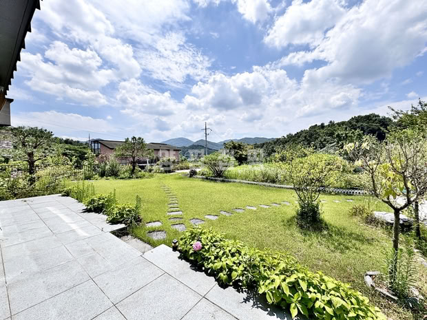 한적한 전원주택 단지 내에 자리하여 조용하고 평화로운 생활을 누릴 수 있는 주택입니다. 남서향으로 먼 산을 바라보는 시원한 조망권을 영구적으로 확보하고 있어 사계절의 아름다운 변화를 집 안에서 감상할 수 있습니다.