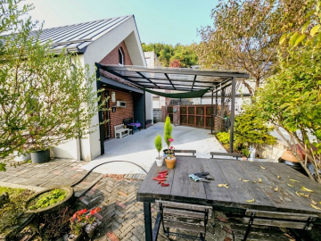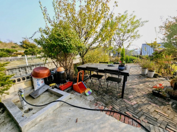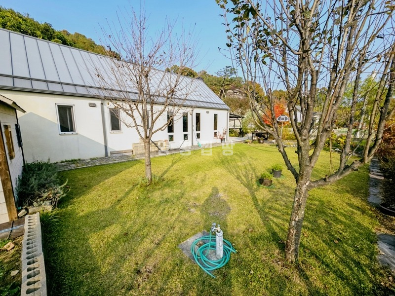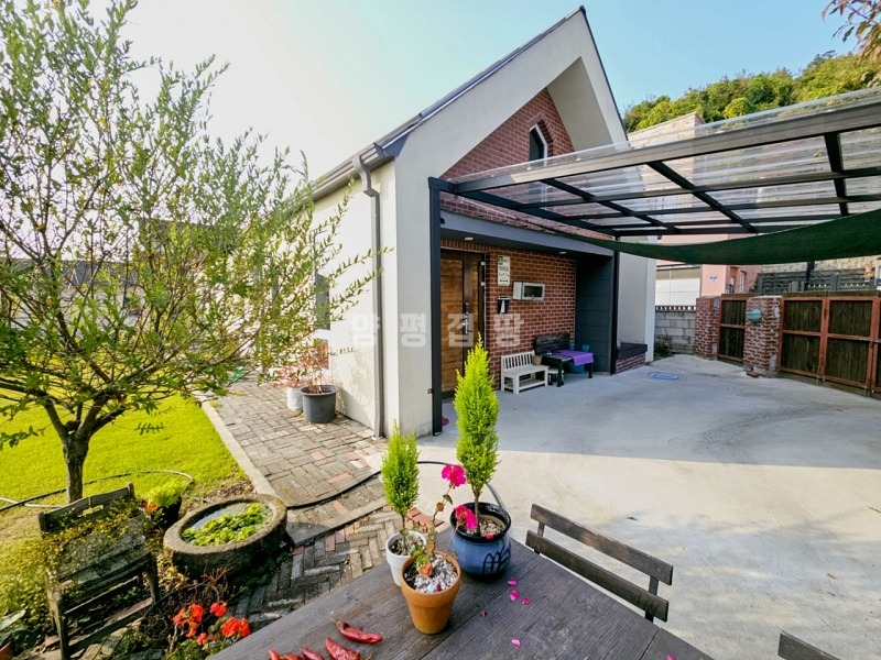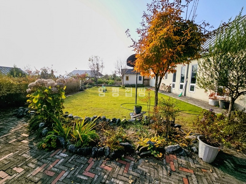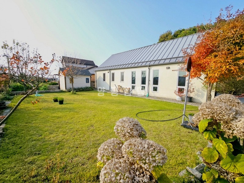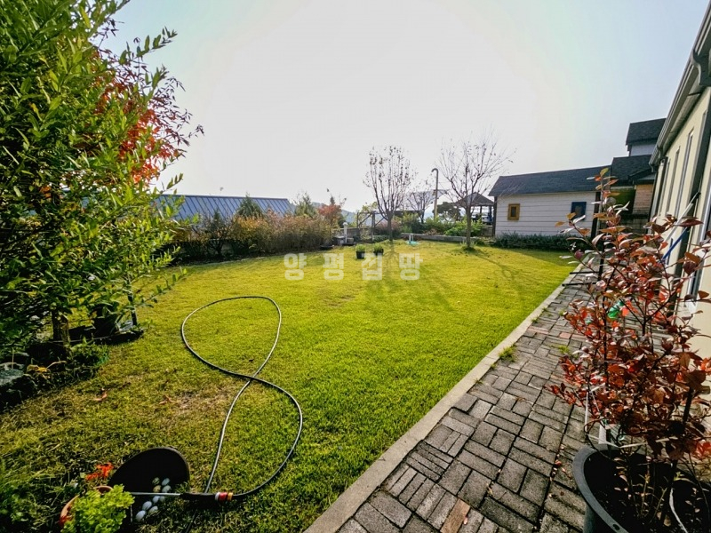 본 주택은 정남향으로 자리하여 하루 종일 햇살이 가득하고, 앞쪽으로 농촌 마을이 펼쳐지는 시원한 전망을 자랑합니다. 푸른 잔디 마당에는 아기자기한 조경수와 꽃나무가 심겨 있어 사계절의 변화를 가까이서 느낄 수 있습니다.