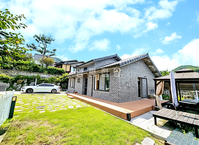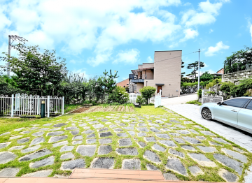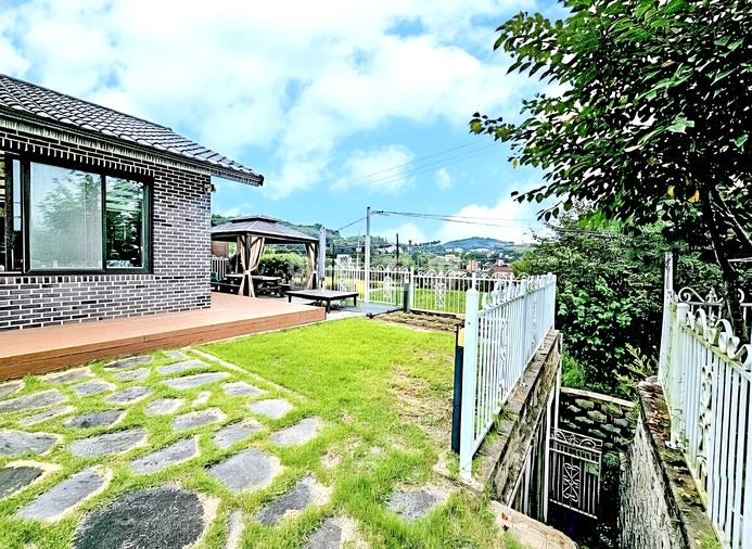지하에는 자동문이 설치된 주차 공간이 있으며, 이곳에서 정원으로 바로 이어지는 계단이 있어 실용적입니다. 정원에는 데크와 텃밭 등이 아기자기하게 꾸며져 있고, 상수도와 오수관로 등 기반 시설이 완비되어 있어 쾌적하고 편리한 전원생활이 가능합니다.