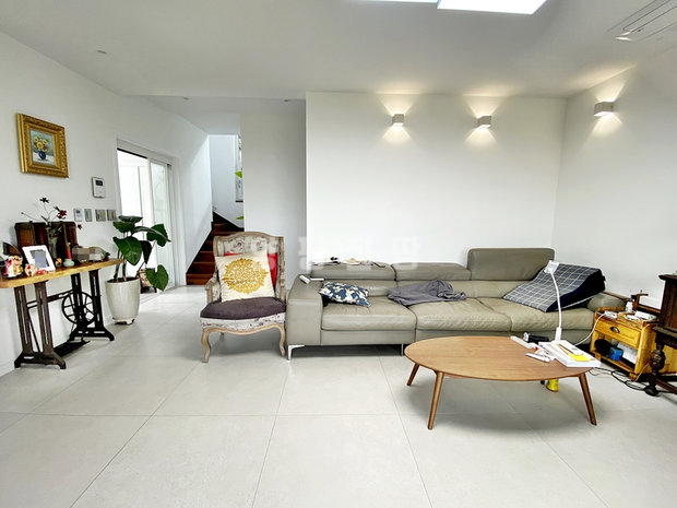 본 전원주택은 시간이 흘러도 변함없는 견고함과 현대적인 감각을 자랑하는 철근콘크리트 구조로 지어졌으며, 노출 콘크리트 외벽 마감으로 세련된 멋을 더했습니다. 1층과 2층에 각각 거실을 두어 세대원의 프라이버시를 존중하는 실용적인 공간으로 설계되었습니다.