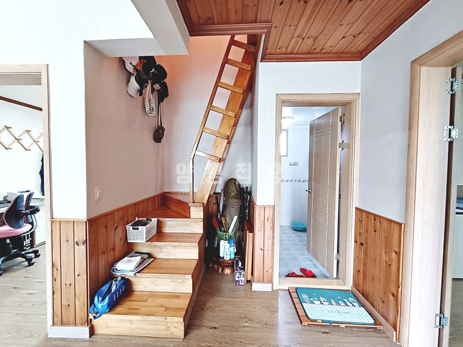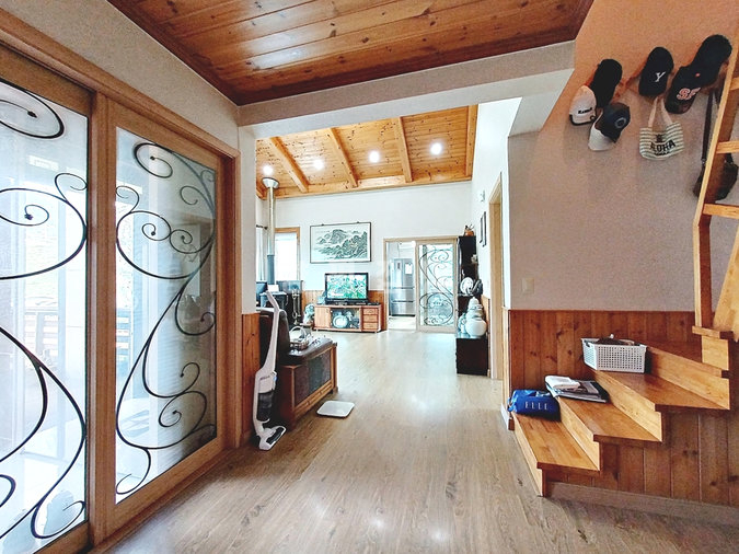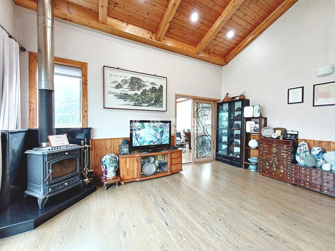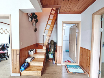 본 주택은 2008년에 견고한 벽돌(조적조) 구조로 지어졌습니다. 튼튼하고 안정적인 주거 환경을 제공하며, 모든 세대가 선호하는 편리한 단층 구조에 별도의 다락방(복층) 공간까지 갖추었습니다. 거실은 박공 지붕 형태로 천장이 높아 개방감이 뛰어나며, 안방에는 드레스룸이 마련되어 있습니다.