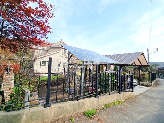 관리비 절감에 매우 효과적인 태양광 패널과 전기차 충전기가 설치되어 있으며, 난방은 기름보일러와 화목보일러 겸용 벽난로를 사용하여 효율을 높였습니다. 편리한 상수도 기반 시설을 갖추었으며, 2층에는 별도 다락 공간까지 있어 공간 활용도가 매우 뛰어납니다.
