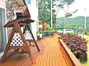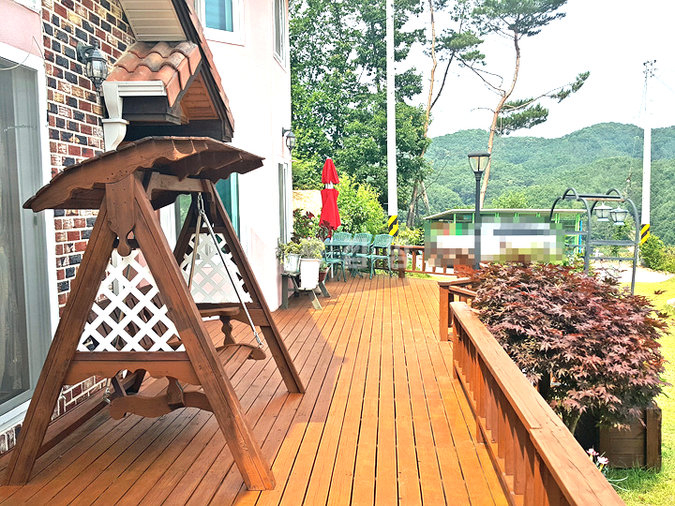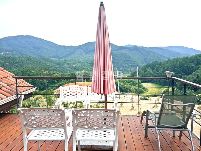 거실의 벽난로가 난방과 운치를 더하며, 1층 안방에는 드레스룸이 마련되어 있습니다. 2층에도 별도 테라스가 있어 여유로운 휴식 공간을 제공합니다. 잘 가꾸어진 잔디 정원과 텃밭, 그네, 피크닉 테이블 등이 갖추어져 있어 전원생활의 여유를 만끽할 수 있습니다.