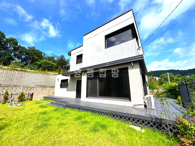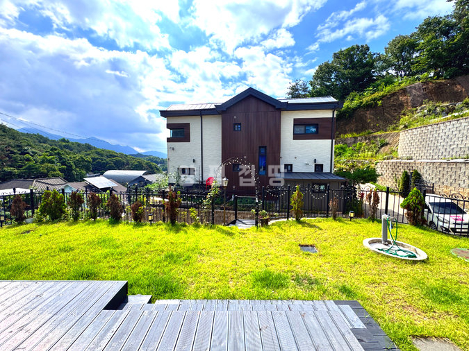 1층에 안방과 거실, 주방, 욕실 2개를, 2층에 방 2개와 욕실 1개, 미니 거실을 갖춘 넉넉한 구조입니다. 남동향으로 배치되어 채광이 우수하며, 트인 산 조망을 즐길 수 있습니다. 4대 이상의 넉넉한 주차 공간과 넓은 텃밭, 잔디 마당이 잘 갖추어져 있습니다. (매매 5억, 월세 5000/150 동시 진행 가능)