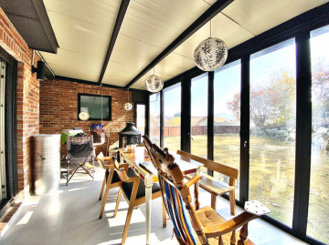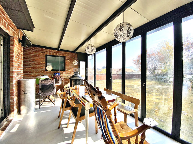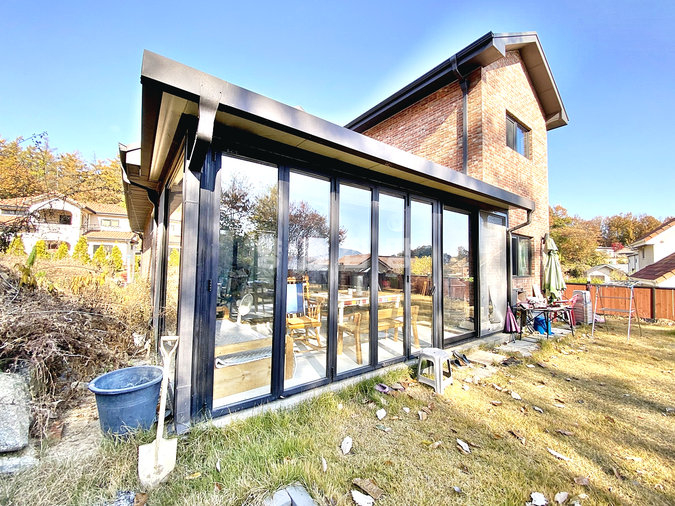 본 주택은 건축주가 직접 거주하기 위해 고급 자재를 사용하여 꼼꼼하게 지은 집입니다. 독일식 시스템 창호, 한샘 주방 및 욕실 가구, 시스템 에어컨 5대 등 옵션이 화려합니다. 1층 거실 앞에는 폴딩도어가 설치된 넓은 썬룸이 있어 사계절 내내 다용도 공간으로 활용하기 좋습니다.