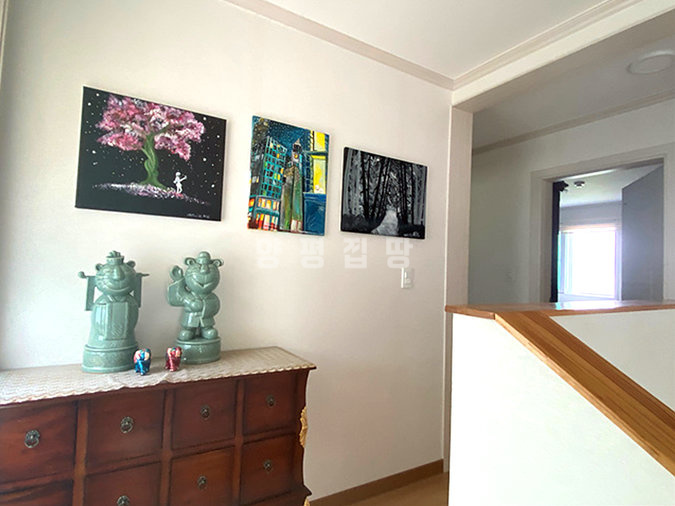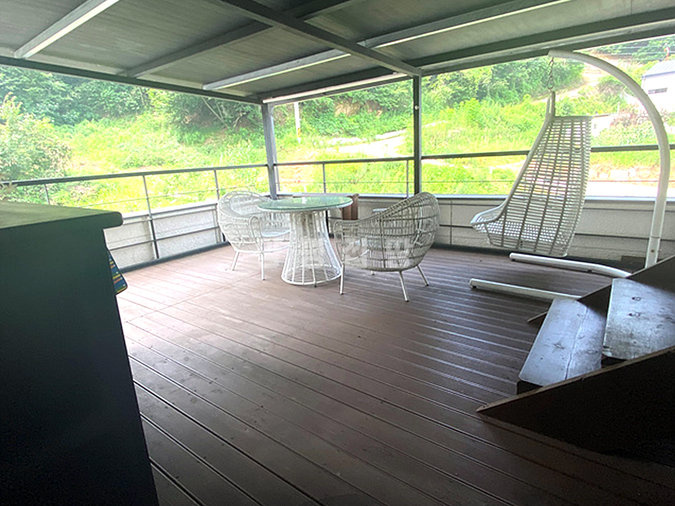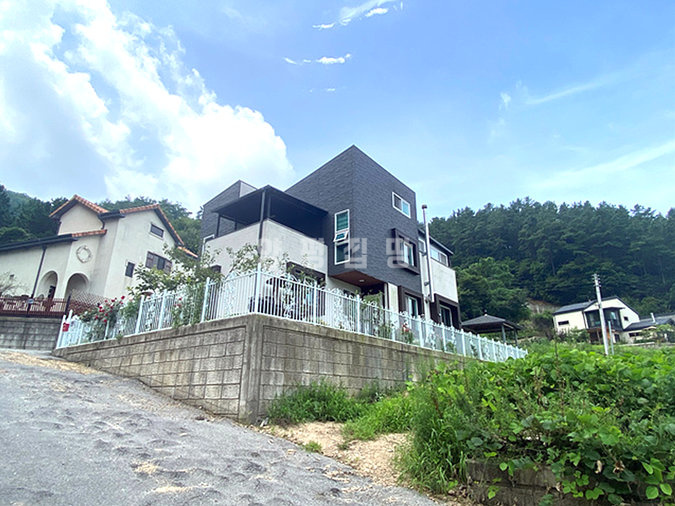 2016년에 준공된 이 주택은 건축 설계비만 2천만 원을 들여 공들여 지은 집으로, 공부상 면적(38평)보다 넓은 실사용 면적(약 43평)을 자랑합니다. 1층에는 방 2개와 거실, 주방이 있으며 최근 주방 싱크대를 리모델링하여 깔끔합니다. 2층에는 방 1개와 계곡이 내려다보이는 테라스, 그리고 천창이 있는 운치 있는 다락방이 있어 공간 활용도가 높습니다.