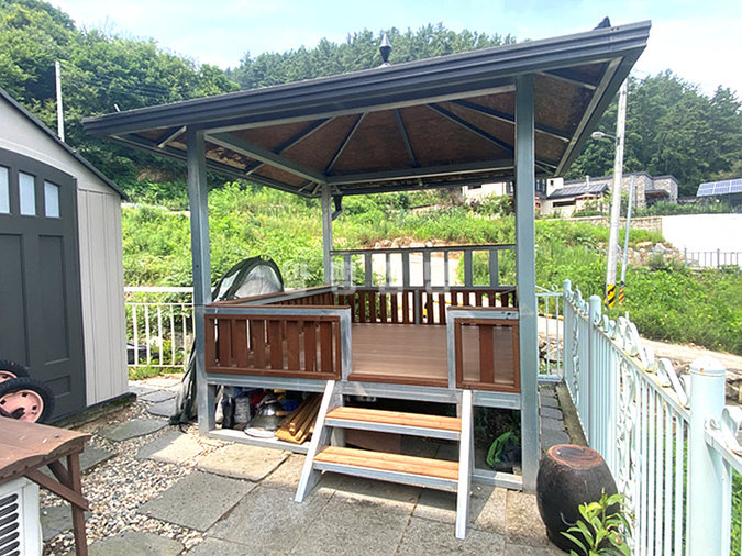 거실에는 따뜻한 벽난로가 설치되어 있으며, 외부에는 계곡을 따라 정자와 창고가 마련되어 있어 전원생활의 낭만을 즐길 수 있습니다. (진입로 일부 보수가 필요하여 군청에 민원 진행 예정입니다.)