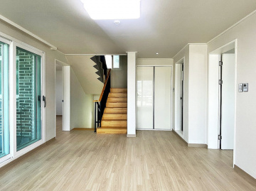 본 주택은 2017년에 준공된 튼튼한 철근콘크리트 구조로, 1층에 방 1개와 거실, 주방, 욕실을, 2층에 방 2개와 파우더룸, 욕실, 베란다를 갖춘 33평 규모입니다. 한샘 주방 가구가 설치되어 있으며, 상수도를 사용하여 물 걱정이 없습니다.