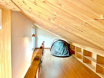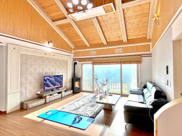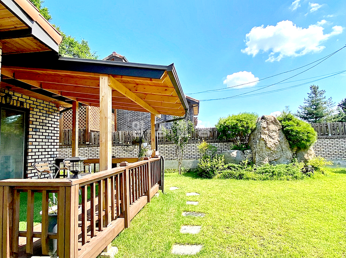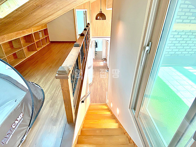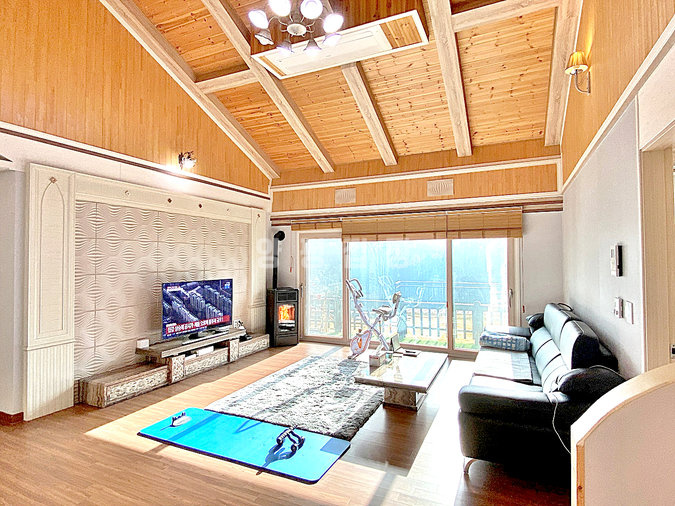 남동향으로 배치되어 채광이 좋으며, 거실에는 시스템 에어컨과 벽난로가 설치되어 있어 여름에는 시원하고 겨울에는 따뜻하고 운치 있는 생활이 가능합니다. 1층은 거실, 주방, 다용도실, 방, 욕실로 구성되어 있고, 2층은 옥탑방과 베란다로 이루어져 있습니다.