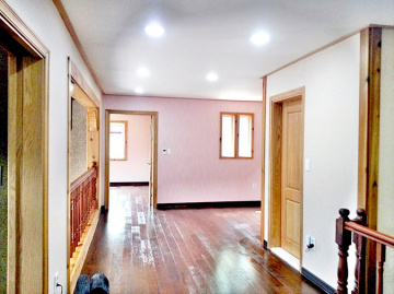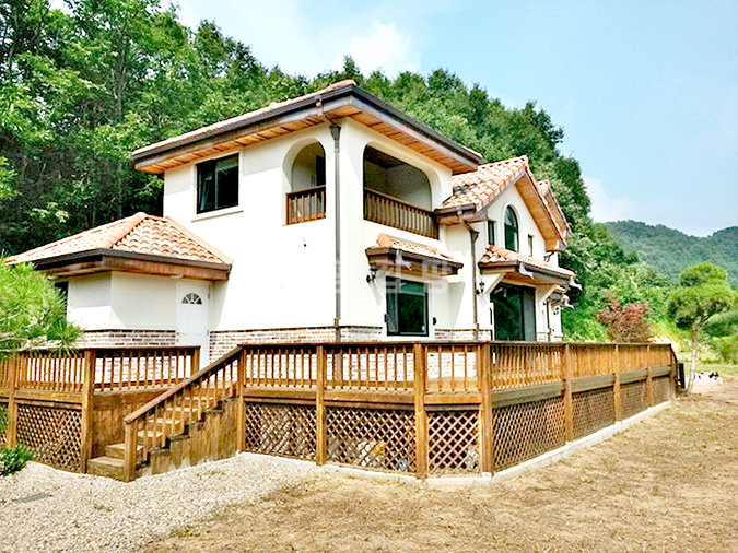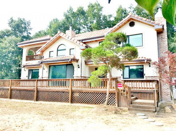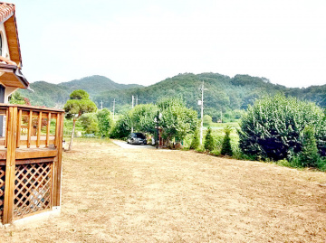 2016년에 준공된 이 주택은 친환경 목조 구조로 지어졌으며, 1층에 방 2개와 욕실 2개, 2층에 방 2개와 욕실 1개를 갖춘 60평형의 넉넉한 공간을 자랑합니다. 남향으로 배치되어 채광이 뛰어나고 막힘없는 조망을 선사합니다.
