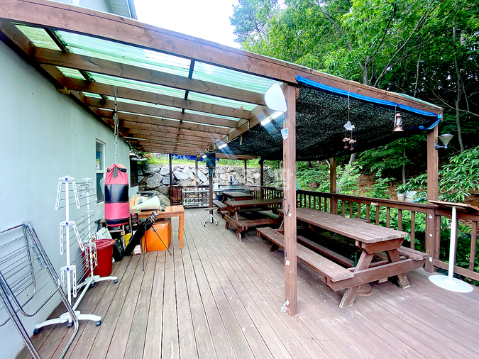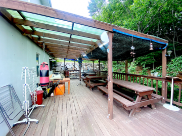 5kW 대용량 태양광 패널이 설치되어 있어 전기료 걱정이 없으며, 거실에는 화목난로가 있어 난방비 절감과 운치를 더합니다. 약 7.7평 규모의 정식 허가된 창고가 별도로 있어 작업실이나 다용도 공간으로 활용하기 좋습니다. 주택 옆 데크 아래로는 맑은 실개천(구거)이 흐르고 있어 전원생활의 즐거움을 더해줍니다.