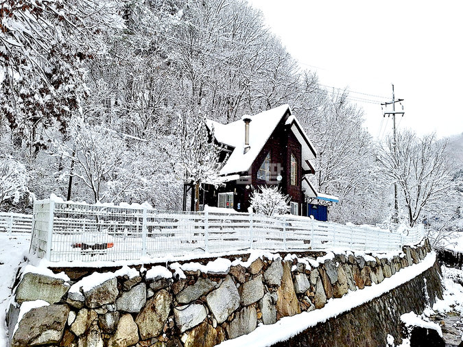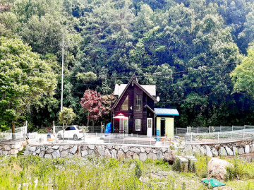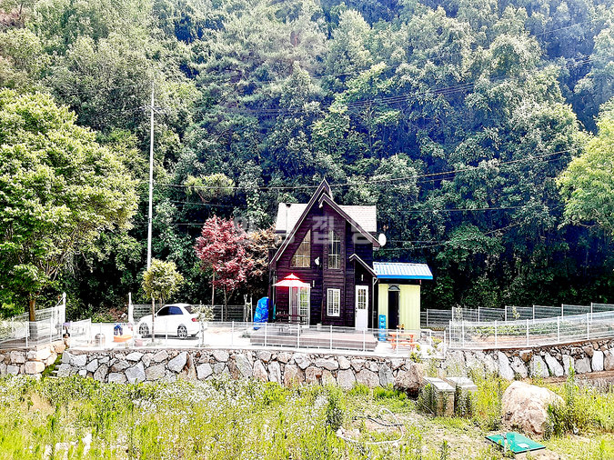 청운면 갈운리, 맑은 하천이 접해 있는 마을 안쪽에 자리한 2층 목조 전원주택입니다. 등기상 토지 면적은 89평이지만, 국유지 하천 부지 약 60평(연 3만원 점용료)과 인접 타인 소유 임야를 추가로 사용하여 실제로는 약 200평에 달하는 넓은 마당을 누릴 수 있습니다.