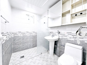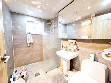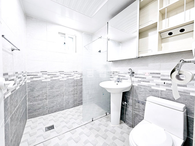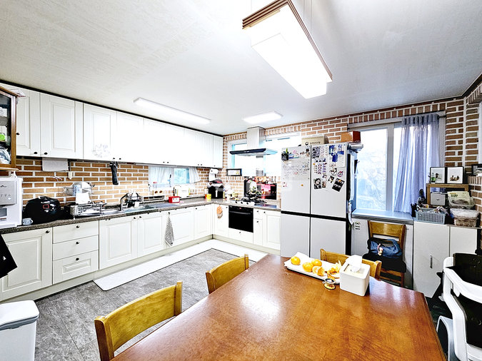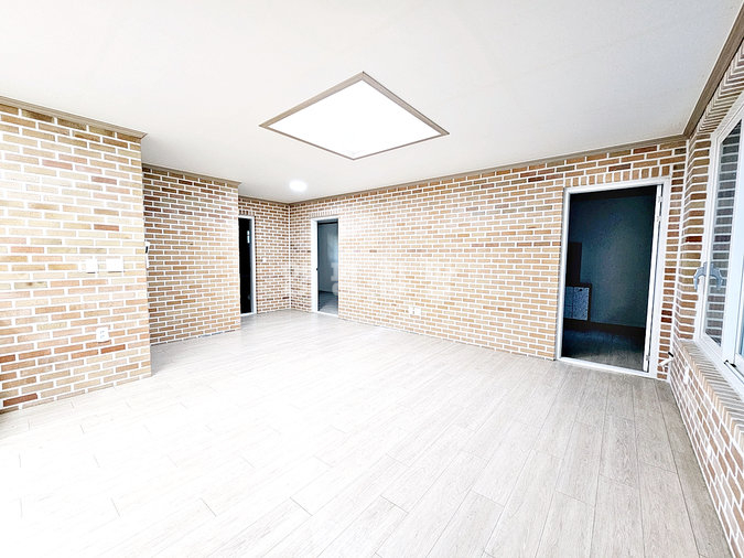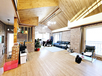 1층 임대 세대는 약 30평 규모로 방 3개, 욕실 2개, 썬룸이 시공된 데크를 갖추고 있습니다. 최근 싱크대 교체, 도배, 청소를 완료하여 즉시 입주가 가능한 최상의 컨디션을 유지하고 있습니다. 임대 세대는 기름보일러를 사용합니다.
