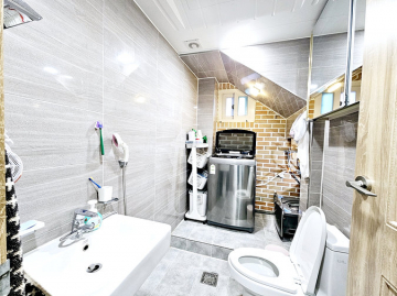 건물은 주인 세대와 임대 세대로 확실하게 분리되어 있습니다. 주인 세대는 1층 일부와 2층 전체, 그리고 15평 이상의 넓은 다락 공간을 사용하며 방 3개, 욕실 3개 구조입니다. 특히 주인 세대는 난방비 효율이 뛰어난 지열보일러를 사용하여 유지 관리비 부담을 덜었습니다.