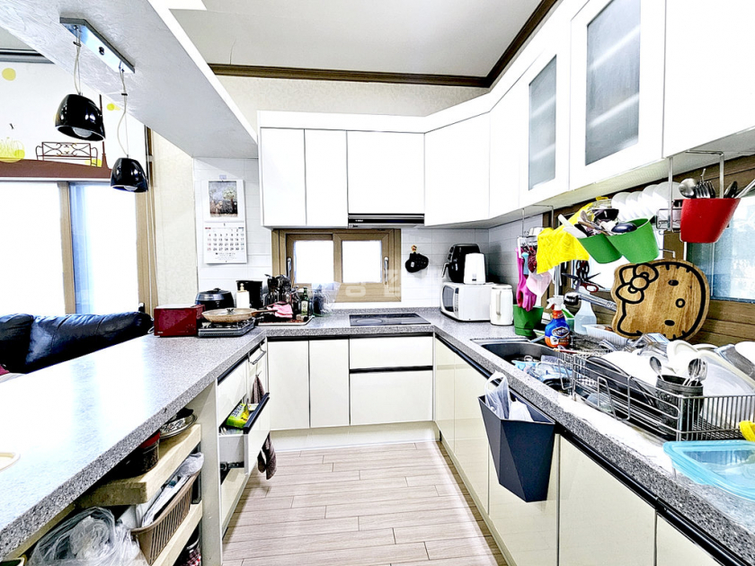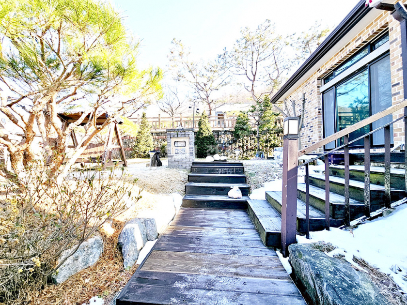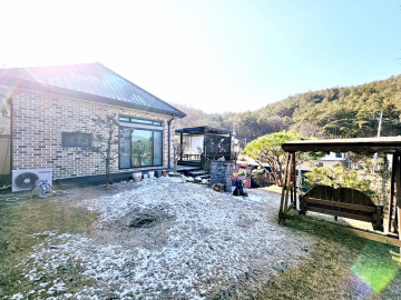 2015년에 준공된 이 주택은 1층과 지층으로 구성되어 있습니다. 주 생활 공간인 1층은 약 26평으로 방 2개, 욕실 2개, 거실, 주방이 있으며, 지층(약 18평)에는 차고와 창고뿐만 아니라 황토 구들방과 욕실, 간이 주방이 별도로 마련되어 있어 손님용이나 취미 공간으로 활용하기 좋습니다. 난방은 효율 좋은 지열보일러를 사용하여 유지비 걱정을 덜었습니다.