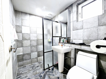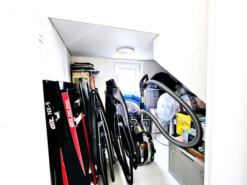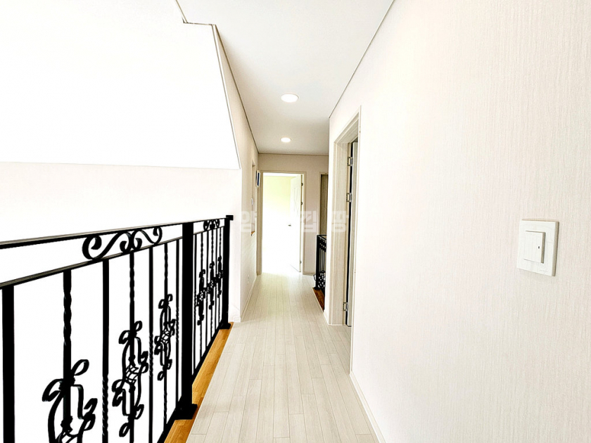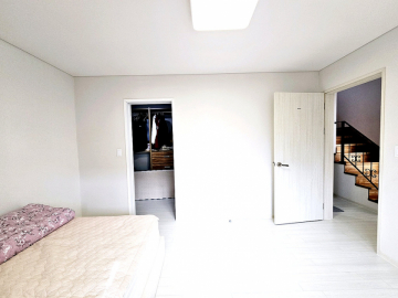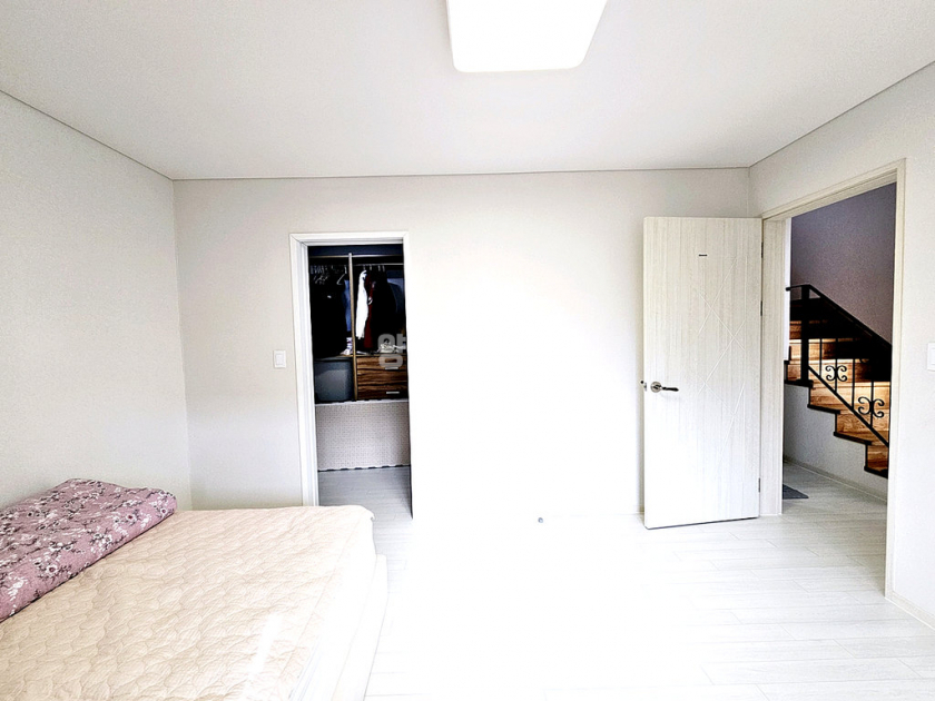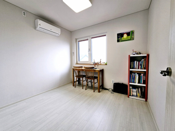 주택은 도로보다 지대가 높아 프라이버시 보호가 되며, 벙커형 주차박스가 있어 차량 1대를 안전하게 주차할 수 있습니다. 전기와 통신 선로가 지중화되어 있어 마을 경관이 깔끔합니다. 내부는 1층에 방 1개와 거실, 주방, 욕실, 다용도실이 있고, 2층에 방 3개와 욕실이 있어 총 방이 4개나 되는 구조입니다. 대가족이 거주하거나 손님용 방이 필요한 분들께 적합합니다.