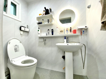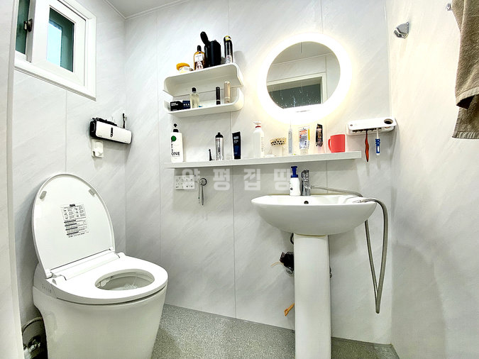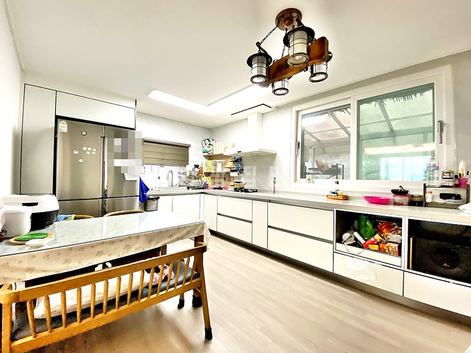 내부는 2세대가 독립적으로 거주하기에 완벽한 구조입니다. 1층은 방 2개, 황토방, 욕실 2개, 거실, 주방으로 구성되어 있으며, 2층은 방 1개, 거실, 주방, 욕실, 테라스가 있고 외부 철계단을 통해 별도 출입이 가능합니다. 태양광 패널과 심야전기보일러를 사용하여 넓은 평수임에도 유지비 부담을 줄였습니다.